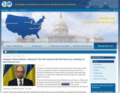 O primeiro ministro da Ucrânia, Arseni Iatseniuk, escreveu no site da Embaixada do seu país nos Estados Unidos que os cidadãos do Leste que se opõem ao regime de Kiev são “sub-humanos” de que “é preciso limpar a nossa terra”; interrogada sobre o que fazer com os oito milhões de russos que vivem na Ucrânia, a ex-primeira ministra Iulia Timoshenko respondeu: “exterminá-los com bombas atómicas”. Isto passa-se com apoio da União Europeia e dos Estados Unidos da América no ano da graça de 2014.